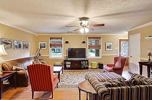 Beautiful, spacious home renovated from top to bottom. Large open living area w/beautiful wooden bar & large open kitchen w/granite counters, SS appliances & beautiful brick floors. 5 bedrooms total or large master suite w/exercise room/office. All bedrooms are large w/nice closets, & there is 1 bedroom down w/an attached bath that would be a great guest room. All baths are updated; there is a security system, & a lsrge back yard w/covered patio.