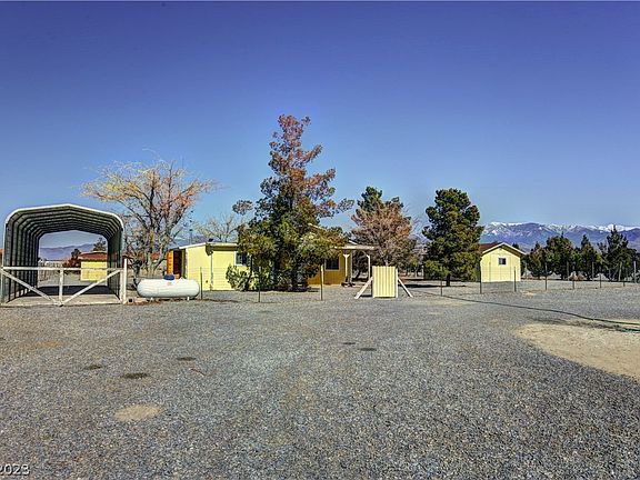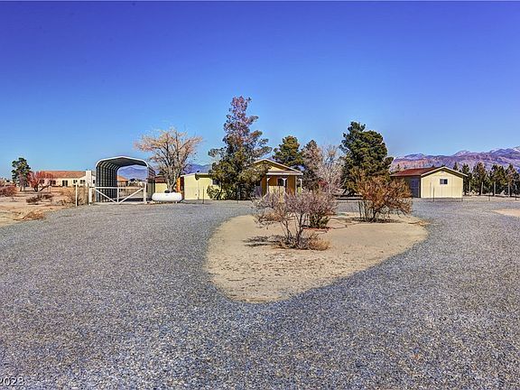Come see the perfect little home in the city of Pahrump with a 45 min drive from Las Vegas. This property is a small stick built home with 2 bedrooms a 2 baths roughly 1100 sqft with a RV carport and many out buildings . Property has been use as well-kept rental for many years. Full acre lot that is fully fenced perfect place to store and enjoy you off road vehicles.