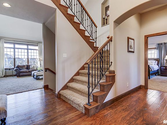 Impressive new listing in Savannah Pointe Subdivision! This one owner 2008 Showcase Home offers 5 BR/4.5 BA. with a custom gourmet kitchen featuring SS appliances, solid surface counter tops, cherry cabinets and large island perfect for entertaining. Double sided fireplace between hearth room and living room and another one in the den! Beautiful hardwood floors and main floor master bedroom. The finished daylight basement offers another large family room, wet bar with granite counter tops, home gym, bedroom and full bath! Expect to be further impressed once you enter the backyard with the in ground heated salt water pool with automatic cover, covered deck, and stone outdoor living area with another fireplace, irrigation system and alarm system. The sellers have finished the basement, added covered deck, pool, pavilion, landscaping and fenced in yard. This home offers over $175,000 in updates!