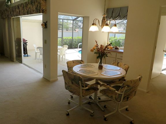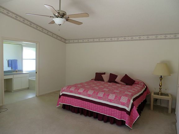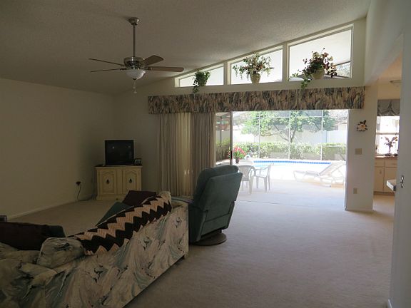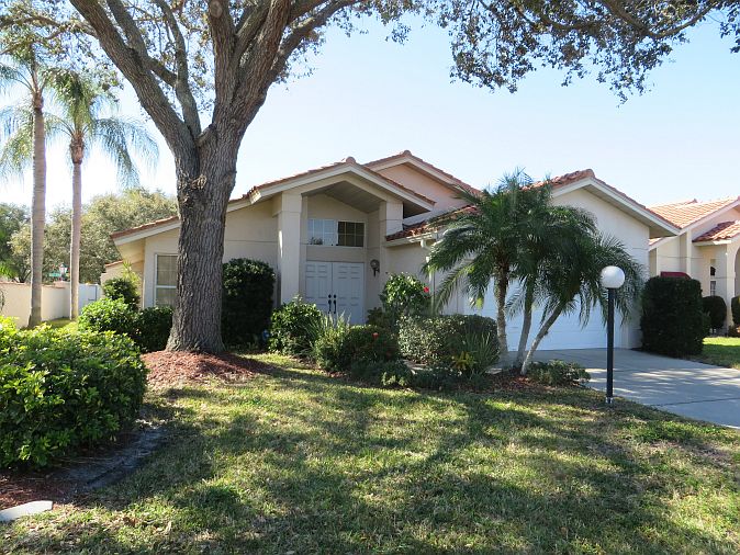 Reduced!!!Rarely available former model home in Seville of Centergate. Approximately 2000 sq. ft. under air, with private, covered lanai, pool and pool cage. This 3 bed room, or 2 bedroom with den has 2 full baths, spacious Master Bedroom Suite with 2 huge walk in closets. Master Bath features dual sinks, 6' garden soaker tub, modern tiled separate shower and tiled floors. Great room, dining area and master bedroom all open onto screened patio/pool area. Fantastic home for entertaining or relaxation. Vaulted and cathedral ceilings add to the open, light and bright floor plan. HOA includes cable & lawn mowing. New tiled roof approximately 3 years old. Agent Owned.