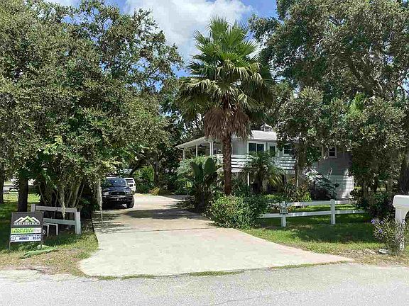 Tropical style beach house built up on stilts and just a short walk to the beach and intracoastal! Amazing covered wrap-around porch with a peak of the river. Lush landscaping surrounds the property with vibrant colors and tropical flair. Spend your afternoons relaxing on the deck or down at the patio and fire pit. This home offers 3 bedrooms and 1.5 baths, open kitchen and dining with a lot of natural light. Great potential as a vacation rental! Laundry and storage room under the house. NO HOA. 2 covered parking spaces underneath the home, and plenty of additional parking space in the driveway. Just a few steps to waterfront dining at CAPS on the Water. Vilano Beach Town Center (6 minute drive) has a Publix, restaurants, fishing pier, and shops. First floor storage room has approximately 375 sq.ft with plumbing and electrical. Artesian well for irrigation with a 10x12 shed for your landscaping needs. Potential In-Law suite with power and plumbing already in place.