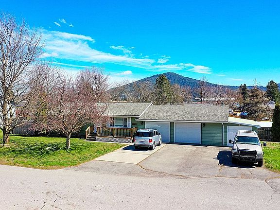 Centrally located home with functional floor plan and NO CCRS! Finished basement with two non-conforming bedrooms, one full bathroom, a second living room with a bar, full-sized fridge and utility/laundry room (with sink and TONS of storage). Updated insulated window coverings and blinds with newer vinyl flooring throughout. NO CARPET! Upstairs with functional galley kitchen, quality cabinets attached to a sunny dining area just off the back deck with view of Canfield Mountain. Living room with two more bedrooms and bathrooms upstairs with a walk-in closet in the master. Second glass sliding door off office upstairs onto back deck as well. This home has no shortage of storage with an attached oversized two-car garage with a built in bench and set up for an air compressor. Separate walk-thru third storage area for additional tools or whatever you need! Additional shed in the back and oversized gates on both sides of the yard for easy access and additional parking for your boat or RV!! This home has been meticulously cared for and can be a great home or rental investment. Yard has a sprinkler system and this corner lot offers enough off street parking so that you can use the garage for your vehicles or for other uses. All appliances are included. Move-in ready.