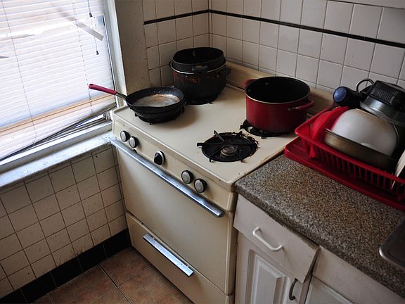 This spacious four-bedroom full house with 1.5 bathrooms is on a quiet residential block.