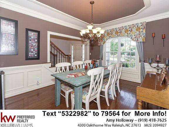 Location! All Leesville Schools! Walk to schools, library and greenway paths! 5 bedrooms, 4.5 baths. Gorgeous eat in chef's kitchen with granite countertops, stainless steel appliances, gas cooktop, large center island and pantry. Hardwood floors throughout most of the first floor. Large downstairs guest suite with full bath. Four upstairs bedrooms and large bonus room. Master bedroom upstairs with extra sitting area, spacious master bath & huge walk in closet. Home provides easy access to 540, 440, RTP, airport, downtown Raleigh & Durham. Located on flat double cul-de-sac street!