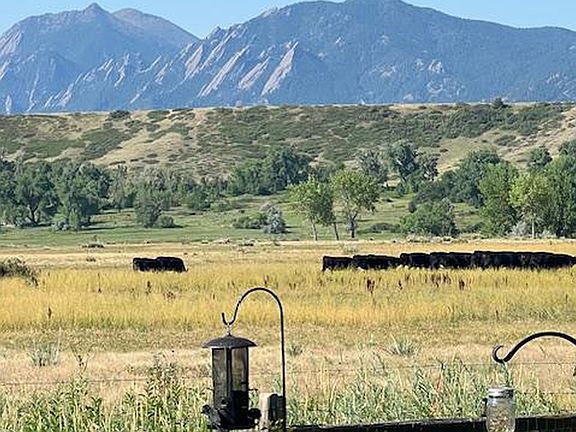 Gorgeous Mountain Views! So much house! Watch the golden rays on sunrise on the Flatirons every morning! Backs to Boulder County Open Space and Boulder Valley Ranch. Amazing Sunsets, A tranquil setting. Love where you Live! Stunning vistas, all from this custom built home 4-Bedrooms upstairs with a 5th main level bedroom w/ 3/4 bath. Spacious formal living room with a gas fireplace, vaulted ceilings. Large Dining room, with coved ceiling. Open floor plan with Kitchen, dining nook and Family room w/ 2nd gas fireplace, all facing South with views to the Flatirons, Boulder Reservoir, as well as easy access to the North Rim and Eagle Trails out your back gate. Kitchen has a huge Island w/ 5-burner Thermador gas range top. 4- stools since everyone is in the kitchen at parties! Prep counters everywhere, a large 2-door pantry, and an additional cabinet pantry. Stunning quartz counters, Farm sink, Bosch dishwasher, Kitchenaid Superba 42" refrigerator, and Stainless Steel double oven. Large 12' x 60' level concrete patio on the South Backyard. Nice 12 x 12 Pergola for covered dining. Oversize 3-car garage, huge vaulted ceiling. Plenty of storage. But if you need more, 1871 sq ft unfinished basement. 2-Daylight windows to the front of the house, 2 window wells in the back. Rough in for another bathroom in basement if desired. 95% Efficient Furnace installed 2020, twin 40 gal water heaters work great. New Hail resistant class IV Roof installed 2019. exterior Painted 2022. 3 of upper bedrooms just painted 8/24, new carpet 8/24. Lowest price of a "View-lot" on Pebble Beach in 4 years!