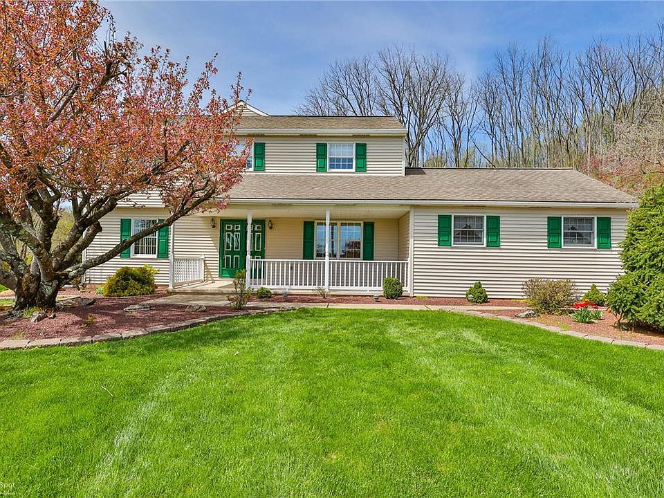 Paradise best describes this magnificent home comfortably resting on 2 acres of lush landscaping amidst awe-inspiring mountain views that will surely take your breath away. Classic charm perfectly blended with modern amenities fill this exceptionally well maintained colonial home. A warm and welcoming foyer sets the tone for an inviting atmosphere that seamlessly flows into and through the heart of the home that features an impressive formal living room, a gourmet kitchen showcasing sleek granite countertops, stunning upgraded cabinetry accented with premium appliances, a spacious dining room with elegant French doors that lead to a comfortable and very cozy family room that boasts a stunning stone fireplace making it perfect for both quite nights with family or entertaining friends. At the end of the day, escape to the owner's en-suite, complete with luxurious soaking tub overseeing those awe-inspiring mountain views. The allure of this home continues in the finished basement, equipped with a convenient basement bar, creating the ideal setting for hosting gatherings and making memories. The expansive backyard is the perfect backdrop for outdoor living. Whether you're enjoying a morning cup of coffee or hosting summer barbecues there’s plenty of room to roam, play or just relax in this picturesque setting. Don’t hesitate, see it today to ensure you’re the lucky one calling it home tomorrow.