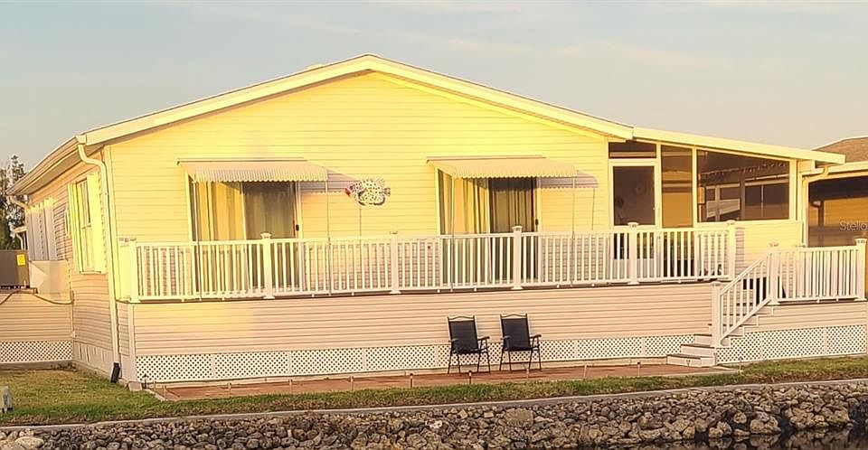 4300 Riverside Drive Unit 86 in Punta Gorda’s River Forest Village offers spacious indoor–outdoor living with a large living room featuring six sliding doors that open to elevated water-view decks, covered and uncovered patios, and a screened lanai. Inside the house there are vaulted ceilings throughout, the kitchen includes a center island, new countertops, and ample cabinetry, while both bedrooms are generously sized, including a larger primary with a private bath. Most of the flooring has been updated, and ceiling fans are plentiful throughout. Extra features include a wonderful enclosed work area or storage that is just off the front door, the roof, air conditioner and siding are less than 2 years old. Additional features include double pane windows, accordion style hurricane shutters and crown molding throughout. Reverse osmosis water treatment under kitchen sink, light pipe skylights in baths and kitchen. This home is in great condition and ready for anyone to move in! By the way, living in River Forest Village adds exceptional amenities, including a clubhouse, heated pool, shuffleboard courts, and a variety of social activities, creating a welcoming and active lifestyle. Do not wait and see this one today- truly affordable living right at the foot of the Peace River!