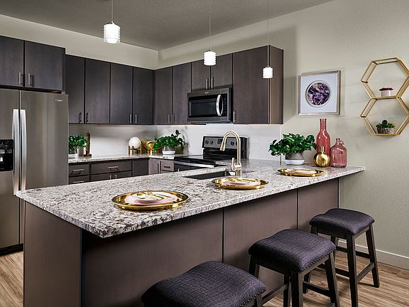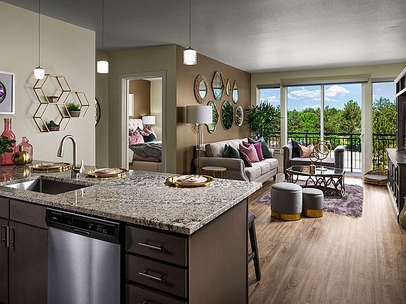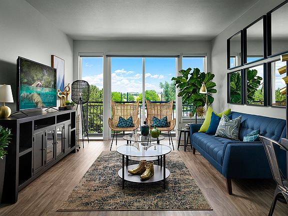- Exterior features: Barbecue, Blocks from RTD Light Rail at Belleview Station, Brushed nickel fixtures, Business Center, Convenient access to downtown Denver, Dedicated yoga area and ballet barre, Glass-top stoves, Granite countertops with backsplash, Large 21 cubic feet refrigerators, On-Site Maintenance, On-Site Management, Pet Park, Stainless steel Energy Star appliances, TV Lounge, Wood-style plank flooring in the great room