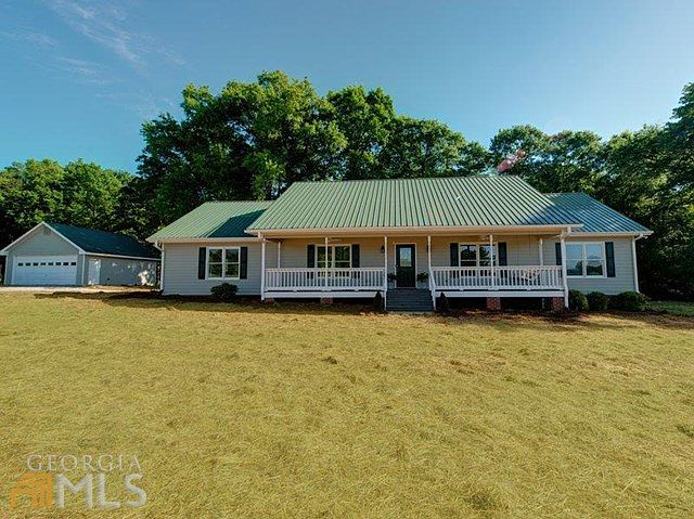 Spectacular setting. Beautiful home on 6+ acres. Open land and barn perfect for horses. Wooded in back with creek. Newly renovated 3 BR home features hardwood and pine flooring in great room, kitchen and bedrooms. The great room has vaulted ceiling and wood burning fireplace. The spacious kitchen has granite countertops and tile back splash. Plenty of room in this home, with an additional family room. Enjoy sitting on the private back deck and watching nature. The detached garage has ample storage for workshop area. Nice barn for livestock. 100% financing area! New composite shingle roof and paint. Brand new HVAC system and heat pump. Outdoor covered patio. Must see.
