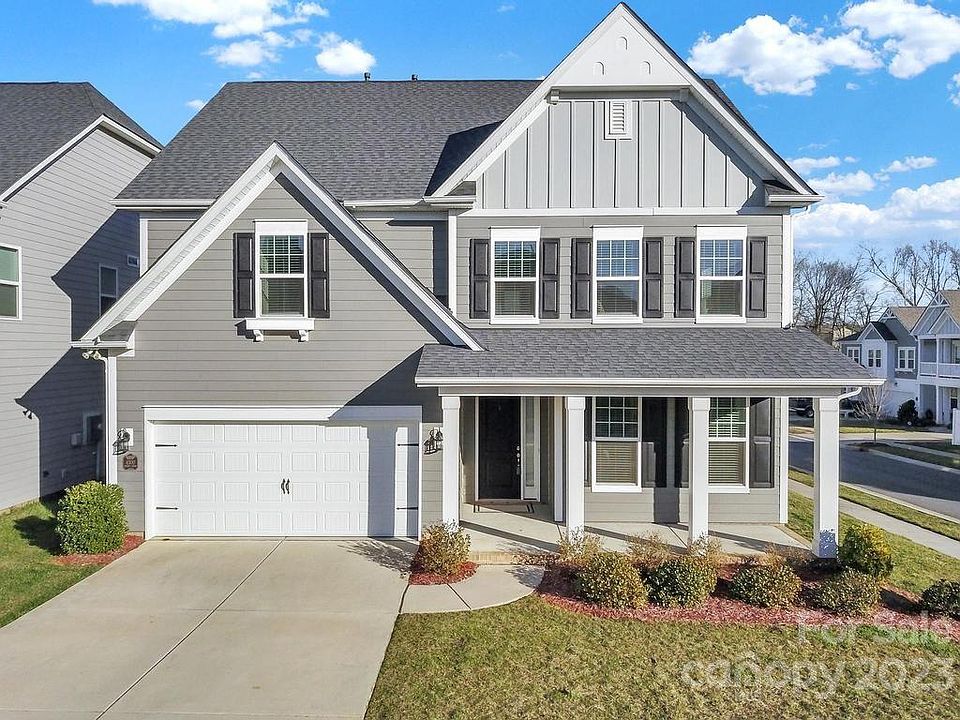 This two story, 4 bedroom, 3 bathroom features a guest suite on main level and a covered rear porch great for year round entertaining! This home boasts a bright kitchen with alpine white 42" cabinets, large island, subway tile backsplash, quartz countertops and gas SS appliances. Features such as a formal dining room and built in coat valet, laminate floors, ceramic tile throughout trey ceiling and heavy moldings add to the luxury of this open and inviting floor plan. There is a spacious owners suite with a gorgeous ensuite bathroom with double vanity, oversized shower and huge walk-in closet.