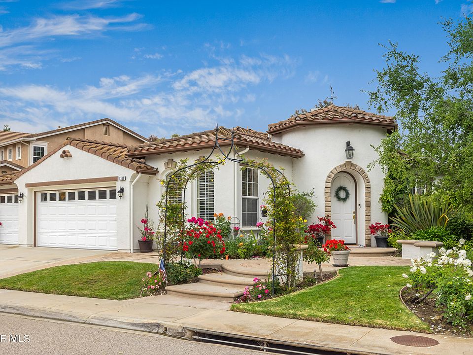 From the moment you step into the circular foyer of this stunning single-story home in Dos Vientos, you'll want to make it your own. The floorplan flows easily from one room to the next, with an open concept kitchen and main room perfect for enjoying time with family and friends. The grand kitchen has granite countertops and plenty of storage, with lovely views of the garden from the window. The four bedrooms are spacious and have large closet storage. A laundry room is conveniently located central to the home, with cupboard space and a sizable sink. Perhaps best of all, the outdoor living space, in the very private and serene backyard, invites you to relax and take in the mountain views. The expansive Pergola covers the stamped concrete patio, a patio plenty big enough to have multiple seating areas for entertaining. Don't miss the built-in BBQ, ready for a summer cookout. Raised garden beds are tucked away on the side of the house, yielding fresh vegetables, and an apple tree produces a nice bounty every season. Relax in the bubbly spa at the end of the day, knowing you have a home you'll likely want to live in for many years to come. Don't miss this outstanding opportunity!