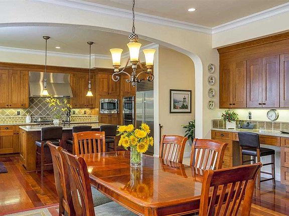 Urban living in wine~country setting. Construction completed 2009 has lush mature landscaping. 11 fruit trees, 40+ grape vines, flowers, vegetable beds. Chef`s kitchen(Sub~Zero, Wolf, Bosch appliances) and large Great Room with view and access to back yard. Formal living and dining rooms. Open 8/17.