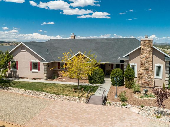 Your home is waiting...Enjoy amazing views of Granite Mtn & magnificent sunsets from your fabulous home in Williamson Valley Ranch.Priced WELL BELOW RECENT APPRAISAL. Awesome Kitchen w/extra large island - beautiful granite and wood package, double oven, double fridge/freezer, walk in pantry. Living room has stunning floor-to-ceiling rocked wood-burning fire-place. 2nd gas fireplace is great-room. Down-stairs is huge with 2 mini-suites on each side. Panoramic view. Storage galore. Fenced yard. Fruit Tree, Drink pond for wild-life. Quite.. Peaceful. Hand pump on well. (recently added)... Well produces 17+ GPM ... WELCOME HOME..