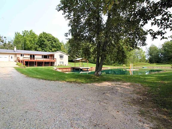 Take a 4 bedroom, 3 bath ranch home, and place it in the McBain countryside on 5 acres, then add a beautiful pond with an artesian well, a pole barn with a sweet man-cave, all centrally located on a paved road, and you have a very desirable package. This home features a large master suite with a spacious private bath, access to the front deck from the master, and then views of the pond from the kitchen, living room, and the master bedroom! The lower level offers a bar area and spacious family room with a gas fireplace, a bedroom on the walk-out side, and a 3/4 bath. There is a 460 sq ft bonus room that only needs flooring to be completely finished and offers a great space for a recreational room, exercise room, or that home office. The 5 wooded acres offers plenty of yard on all sides of the home, plug-ins around the pond for your guest rv's, and the pole barn features a finished and insulated space to get away from it all. What a place to make family memories, so grab your favorite beverage and pull up a chair on the covered dock with your friends as you watch the kids play in the pond all summer long!