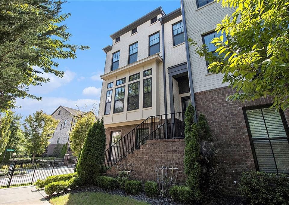Don't miss this move-in ready (Furnished or Unfurnished) beautiful brick end-unit townhouse located in the highly sought after gated Georgetown Square community. This very spacious 4 bedroom,3 full bathrooms, plus 1 half bathroom home boasts three finely finished levels, each showcasing high-end finishes throughout. The main level area has a living room with a gas fireplace for cozy atmosphere, and open flow to a formal dining area to showcase a formal dining set. The soaring 10-foot ceilings create a great feeling of space. The area next to the kitchen has option for use as a breakfast area or a 2nd seating area with open view/flow to the kitchen for family and entertainment connections . You will enjoy the gourmet kitchen which proudly boasts quartz countertops, high-end Bosch built-in stainless steel stove, microwave/convection oven, gas cooktop, and vent hood. It has special touches like the desirable soft-close shaker cabinets for the sophisticated touch and large custom pantry. The home has engineered hardwood floors on the main level add easy to maintain durable glamour to the expansive space, stairwells, and hallways throughout the home. Bedrooms are carpeted for quiet transition to bathrooms with professionally designed lovely floors, matching shower walls and sink counters. The Upper level has three bedrooms, including a generously sized primary suite. Retreat to the primary suite with its elegant double tray ceiling and a luxurious spa styled ensuite bath featuring high quality countertops, flooring and shower, plus a spacious free-standing soaking tub, double vanity, and a 3/4 glass walled shower. You will appreciate the large walk-in close fit for all clothing from casual to fine apparel. The oversized laundry room, also on the upper level, has space for pre & post wash laundry, and optional storage shelving. The fourth oversized bedroom that can flex to serve as a gym, playroom, or home office, including private access to the third full bathroom. There is a very large storage closet that will surprise and delight you for the extra convenience it offers. The terrace level has a rear-entry garage, and entry area useful as reading nook or mudroom. There is an expansive deck on the main level off the kitchen provides easy access for grilling and entertaining with the benefit of a privacy wall and not facing the front or rear of another townhome. Relax and entertain in the community courtyard with seating. Enjoy strolls down the stone path walking trail with shade trees. Bring your on style preferences or ask for referral to an experienced professional Interior designer.
