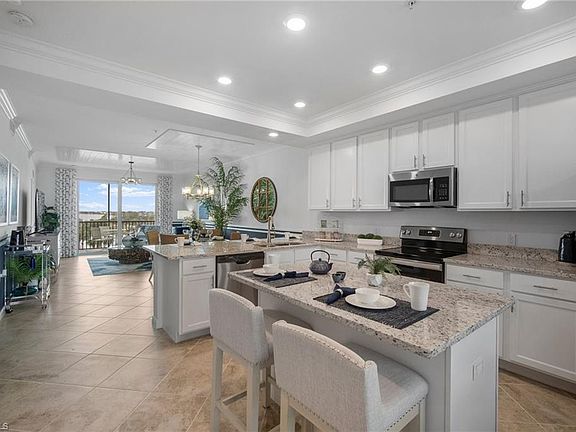 Welcome To Babcock National Golf & Country Club ~ Welcome to Paradise! This FORMER ARBOR MODEL TERRACE CONDO, is located on the 3rd Floor and offers guests 2 Bedrooms & 2 Full Bathrooms. This condo is highly sought after as it was, the former model here in Babcock National. It has been professionally designed & Furnished with every attention to detail throughout the home. With 1198 Square Feet of living space and Million Dollar views of Lake Babcock and the 10th Hole, you'll love catching the sunsets on the horizon, from your Rear Screened Lanai. The gracious Owner's suite boasts a comfortable King sized Bed, 2 generous walk-in closets and a beautiful En-suite bath. The guest bedroom is located on the opposite side of the condo, with a Queen sized bed and an adjacent full bathroom w/ access to the Full Size Washer & Dryer. Its is easy to fall in love with the Open Concept floor plan of the Arbor Model, which features an open kitchen with an island, a eat-in breakfast bar & formal dining space and a beautifully designed living area where you can relax after a fantastic day on the golf course! There is also an outdoor Storage Closet for each Terrace Condo Unit, which is located just across the hall from your front door. The Babcock National Amenity Center includes a Clubhouse, Restaurant, Tennis and Pickleball courts, a Resort-style pool with lap lanes & a Spa / Hot Tub. There are also 3 Satellite Pools, Poolside Tiki bar offering drinks & Light fare and a state-of-the-art, 24 hour fitness center, sauna and Day Spa for your use and enjoyment. Along with these amenities, downtown Babcock Ranch offers you the Lakehouse Restaurant, Slaters Provisions, Coffee Shop & Ice Cream Store, the Community Security office, Miles of beautiful walking trails, and many other Businesses right in the Community. Publix anchors the Crescent B Commons Shopping Center, where you'll find many other restaurants, retail shops & a STARBUCKS, MARSHALLS & an ACE HARDWARE all Coming Right in the Community