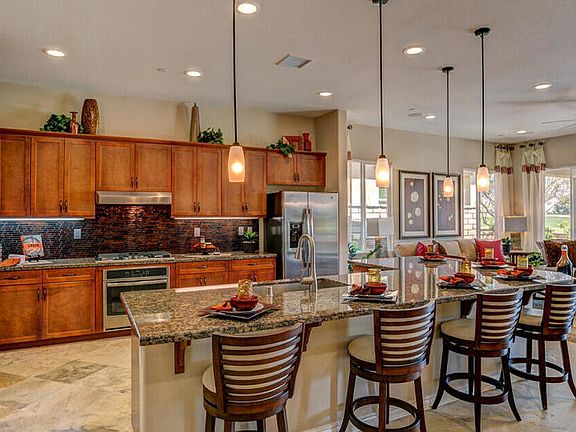 Golf View home in Four Seasons at Terra Lago in Indio. Purchase includes covered patio, utility sink, White Thermofoil cabinets, Quartz package with back splash in kitchen. Come see this community for those 55 and better! This brand new collection of homes at Terra Lago will feature single family homes up to 2,519 square feet. These open home designs feature spacious living areas perfect for functional living. Next to Terra Lago's Golf Course it's perfect to enjoy and entertain family and friends. Four Seasons is known for its resort-style living, and that's just what you'll find at The Lodge clubhouse. At this approximately 22,000 sq. ft. facility you will experience incredible amenities such as a state-of-the-art fitness center with an aerobics/yoga studio, ballroom, beauty salon with massage room, and an indoor pool. Outdoors, you will find a resort-style pool with spa and cabanas, a bocce ball court, 4 tennis courts, 3 pickle ball courts, and a half court of basketball and so much more! This guard gated active adult community features fun activities, clubs and events for all of your interests including crafting, games, and more.***Prices subject to change, all photos are of the model home actual home will vary.