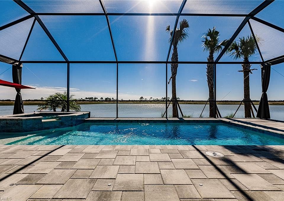 Spectacular home on a "premium" lakefront lot, upgrades galore. Why wait months for the builder to complete your dream home when you can move in tomorrow. Shows like a model, this beautiful pool/spa home features 2 bedrooms plus study, 2 full baths and a 2.5-car extended garage. Open floor plan offers a gourmet style kitchen with quartz counters, stainless appliances, pot filler and a gas cooktop. Plank style ceramic flooring throughout the home. The master bath has split-vanities, spa-like shower and custom cabinets in the master closet large enough for all your wardrobe needs. Enjoy the outdoor kitchen complete with a 5-burner grill, vented hood, refrigerator and sink out on the expanded screened-in lanai with the custom pool and spa. Inside plantation shutters adorn every window and outside are ease-of-use hurricane shutters and cell phone controlled Kevlar screens on the lanai. The garage, with its amazing custom storage cabinets, is large enough for two cars and a golf cart. Babcock Ranch is America's first solar-powered town. Amenities include a championship 18-hole golf course (now open), resort-style pool & spa, state-of-the-art fitness center, tennis center & more.