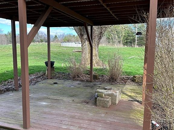Master bedroom with a bathroom on the first floor just off the laundry room and Kitchen. Just Off of the kitchen is an outside 16 x 16 foot deck for plenty of privacy. This home has a spacious living room, dining room, kitchen and bedrooms. Living room features a fireplace heated by propane gas. Three additional bedrooms on the second floor. Included in the sale is washer, dryer, range, refrigerator, and microwave. This property has either a 12 x 24 insulated She Shed or Man cave with Electric and a detached 24 x 40 feet Poll Building/ Garage with Electric and heat.