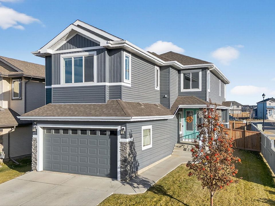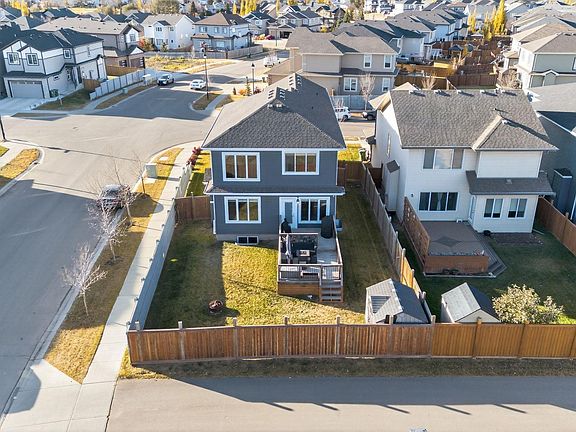 This corner-lot home in Triomphe Estates is move-in ready with upgrades that add real value to everyday living. The main floor has a bright living area open to above, a dining space, and a kitchen with a central island, upgraded stainless steel appliances, and a gas range. The walk-through pantry leads directly to the oversized heated 18x30 garage. A private office and half bath complete this floor. Upstairs offers a bonus room, a primary suite with walk-in closet and dual-vanity tiled-shower ensuite, two additional bedrooms, a full bathroom, and laundry. The finished basement includes a built-in bar with bar fridge and dishwasher, a large rec area, fourth bedroom, and full bathroom. Outside, the yard is landscaped and fenced with a custom deck, gas BBQ hookup, shed, and Astoria LED exterior lighting (2021). Briggs & Stratton backup generator (2024). Recent updates also include new flooring throughout (2025), upgraded gas range (2025), washer and dryer (2023), fridge (2022), and central AC. Come see it.