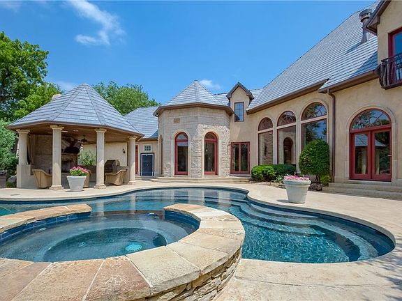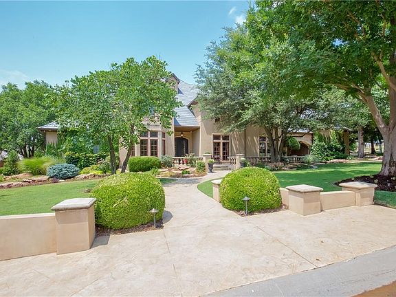 NORMAN'S FINEST GATED COMMUNITY Gorgeous infinity pool with tanning ledge, spa and cabana with fireplace and grill. Large kitchen with island and Viking commercial double-oven with 6 burner gas cook-top & built-in Viking refrigerator. Sumptuous master suite with fireplace and master bath and closet fit for a king and queen. Study connects to master closet and features vaulted ceiling with impressive triangular beams. 2 downstairs bedrooms will fulfill the needs of many families; 3 more are upstairs with media room/game room. Other fantastic features include wood windows, music system. 4 car garage, 2/3 acre lot size is much larger than others, recent $235,000+ roof shingle/insurance storm repairs, partially treed and scenic backyard and over-sized bedrooms. Great pool bath and outdoor shower, too. This one is a MUST-SEE.