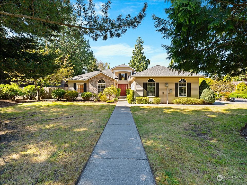 Experience the elegance in this custom-built one-level Skyline home on one of the largest corner lots with partial water views. The grand entry leads to a spacious living room, highlighted by vaulted ceilings, skylights and a lovely fireplace centerpiece. The expansive kitchen with an island flows into a generous dining area leading to a covered back deck perfect for entertaining in any season. This home offers three spacious bedrooms, two full baths, hardwood floors, solid core interior doors and was built to be handicap accessible. Great large garage with built in workbench and storage cabinets. Enjoy the sunny patio and fenced yard ideal for garden or pets. Don't miss the great side yard with a great garden/storage shed!