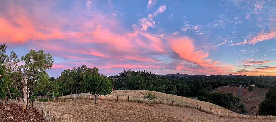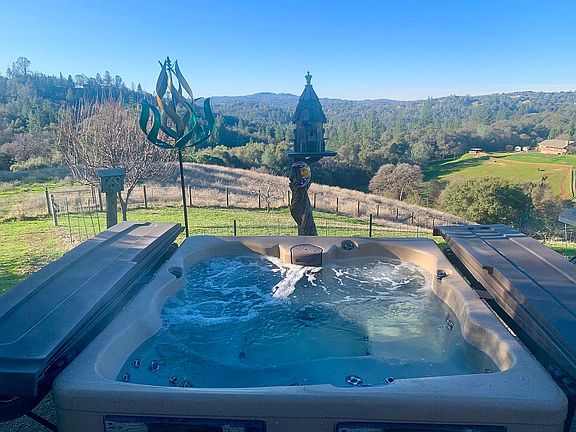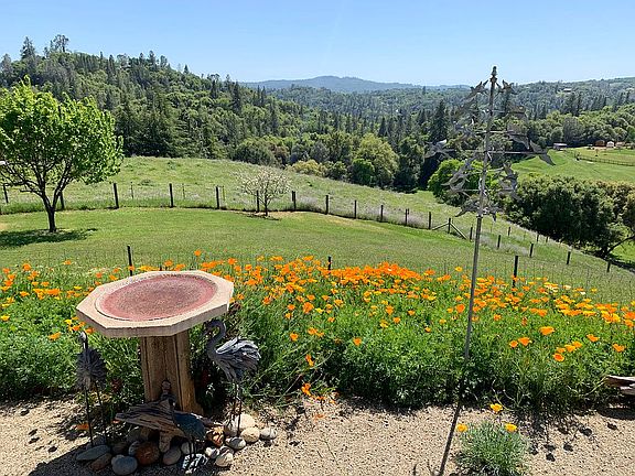 Two houses on this amazing top of the hill private 5 acre property. Newer construction in 2006. Fantastic views - the Main House has a wonderful backyard that includes a covered patio and a metal gazebo to take it all in - plus an almost new large (but very energy efficient) Hot Tub to enjoy year round. The main house has central HVAC and the stand alone in-law unit has a very efficient wood stove. The approx. 1,300 s.f. in-law unit is a one bedroom/one bath with laundry, kitchen, 2 bonus rooms upstairs and a wonderful 300 s.f. enclosed shop. There are also 2 large covered breezeways for parking at this unit. The unit is currently rented - so a great way to offset expenses. The property is completely fenced and cross-fenced for horses (cable hot wire). There is a pipe corral as well as a small hay barn (or other storage) and next to the main house is another stand alone indoor finished shop with shelving and a/c. Tons of storage on this property - all nicely finished with mature landscaping, small fruit orchard.