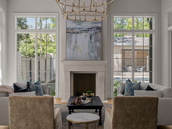 Outdoor living shines here, with a private pool, screened porch, and a fully equipped pool house featuring its own kitchen and bath—ideal for summer barbecues and al fresco dining. The main-level primary suite opens directly to the pool area, creating a private retreat. Upstairs, a spacious media room with wet bar provides the perfect spot to relax or host guests.