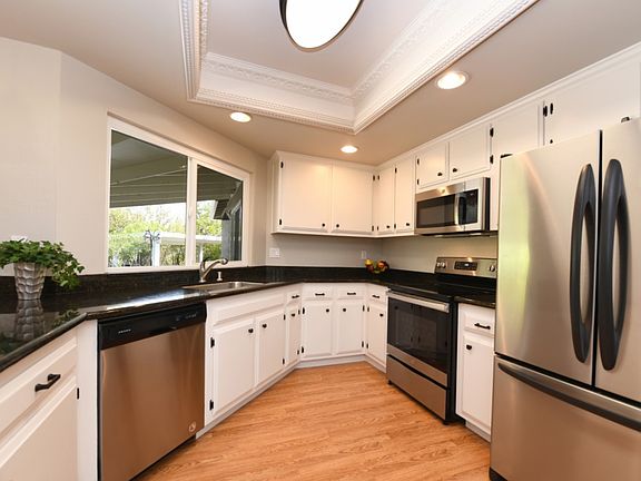 Room to Zoom and study! Lovely, updated 4 bedroom, 2 bath home offers a spacious living room and family room as well as a granite kitchen with stainless appliances. Plantation shutters throughout. Enjoy the view of the hills from your nicely landscaped back yard. The huge covered patio provides plenty of room for gatherings, BBQs, you name it. Need storage? Your 2 car garage is lined with cabinets, and a large backyard shed holds plenty of toys and tools. Popular neighborhood close to eateries, schools, commute routes, and shopping.