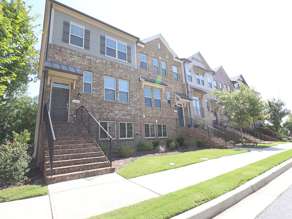 Best School district! Townhome in Gated Swim/Tennis Community. End Unit Townhome with Private back side. No house behind. Open Concept Modern Home. White Kitchen with Granite Countertops. Kitchen island with sink. Open but separate Dining area. All Stained steel appliances in the kitchen. 10" ceilings on Main level. Hardwood floors on the Main floor and stairs. New Carpet all rooms.Family room is at the backside of the house connected to the deck. Private wooded view from the family. Terrace level with full sunlight. Guest room with Full bath. More windows than other units. It is good to have an end unit! Convenient Location! Groceries and restaurants. Two gates in the community.Easy Access to I-85 and Mall of GA. Sims Park, EE Robinson Parks are near.
