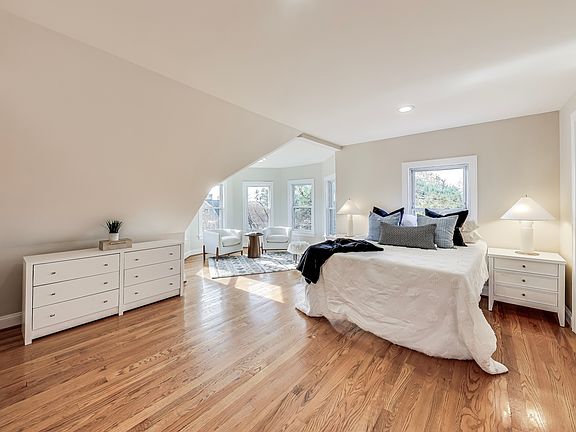 Upstairs, the second level boasts three generously sized bedrooms, including one with a delightful sunroom ideal for a sitting area, home office, or workout space. Two newly renovated bathrooms showcase sleek, neutral finishes, adding to the home's modern appeal. The top floor is a luxurious retreat, offering a versatile layout that includes a spacious primary bedroom with abundant closet space, a separate dressing room, a full bathroom, and an additional room perfect for a home office or private study.