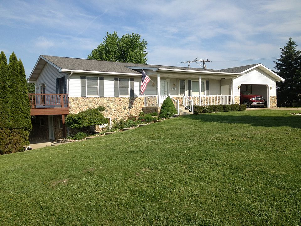 Beautiful 4 bedroom home on a spacious 5 acre lot. Walk out master bedroom onto deck or walkout basement presents a spectacular view overlooking a 2 acre pond. The pond is fully stocked with bass and bluegill and comes with a paddleboat, which maximizes enjoyment of life in and around the pond. The basement, completely finished with 4th bedroom, full bath, and complete kitchen including appliances, adds a whole different dimension to a renting experience. The main floor includes 3 bedrooms, full kitchen with all appliances, 2 bathrooms, 2 car garage, and sun room. An above ground pool and pavilion attached to the deck make this property the ultimate get away from your daily hustle and bustle. Looking for a stress relief???...this property is the prescription.