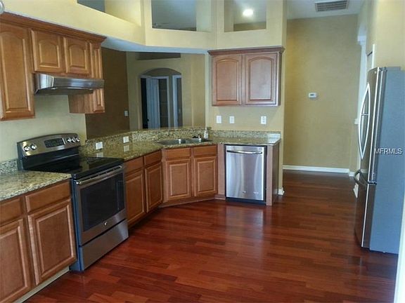 This luxurious home is featured in the gated community of Knollpoint, located in the upscale & fashionable village of Seven Oaks. This elegant home has a master suite that leads out to the covered lanai facing the pond. There are newly installed wood floors throughout this spacious home. The master bedroom has a garden bath, separate shower & private commode. Kitchen has granite counters and stainless steel appliances. This home boasts columns, arches, recessed niches and is a meticulously maintained home. This home has a two car garage, sprinkler and security system. There is a screened lanai that has newly installed tile floors. Minutes away are restaurants, Wiregrass mall , Grove Cineplex and the recently built, state of the art Wesley Chapel Florida hospital. The 7 Oaks Club offers spectacular resort pools, outdoor cafe, lighted tennis courts, walking and cycling trails.