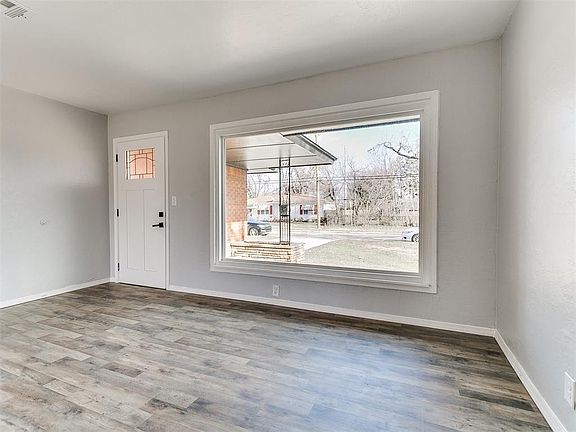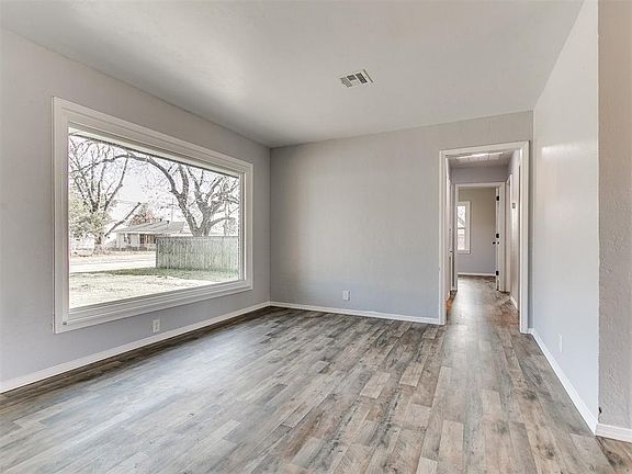 Rare find in Warr Acres! This move-in ready 3 bedroom, 2 living areas, 1 bath is home located in Putnam City Schools has been completed been renovated! Upgrades/updates throughout! The gourmet kitchen has been remodeled with granite counters, new modern white cabinets with lazy Susan, and stainless appliances to include a microwave, stove, and dishwasher! The bathroom has been remodeled and features new paint, vanity, sink, faucet, lighting, flooring, tub and tub surround! Other upgrades/amenities--double pane vinyl windows, modern lighting, and 3 ceiling fans, 2nd living area, indoor utility, wood look laminate flooring throughout, HVAC, water heater, roof, doors, trim, exterior & interior paint, electrical and plumbing. The living room contains wood laminate flooring, new paint, and an oversized picturesque window! Easy access to highways, shopping, eateries, schools, parks and medical facilities. A true must see!