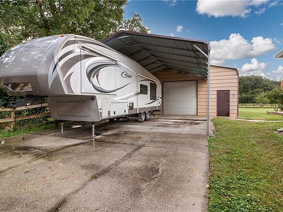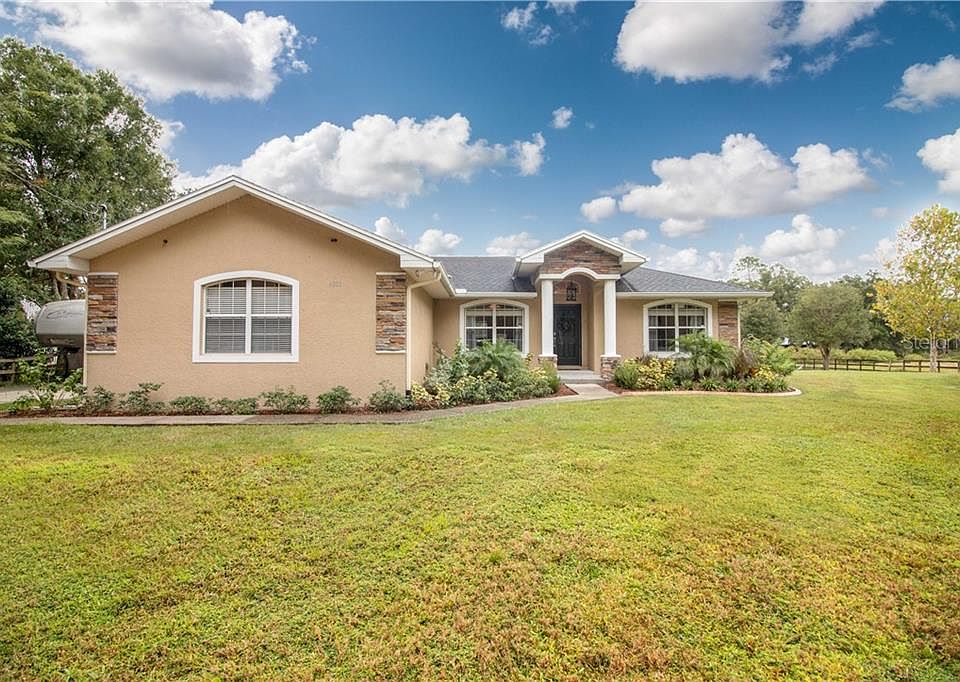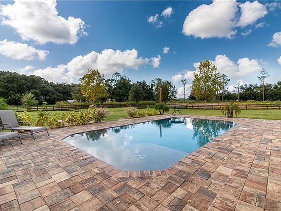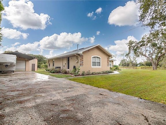 This home has EVERYTHING! Located in a NO HOA area on 1 ACRE OF A FULLY FENCED PROPERTY! SALT WATER POOL added in 2017 complete with pavers all around. Also added, was an outdoor fire pit & paver planters by the pool giving it the perfect ambience. As you pull in you'll notice the gate which provides extra SECURITY. There is an OVERSIZED DRIVEWAY with a 30'x30' DETACHED GARAGE with two overhead doors. Plenty of room to park an RV, BOAT, GOLF CART and it can fit up to 5 cars! This home features an OPEN FLOOR PLAN & has been REMODELED from top to bottom. All NEW KITCHEN COUNTERTOPS-GRANITE (2017), APPLIANCES NEW-2017, NEW PAINT, NEW LIGHT FIXTURES, 2 CUSTOM BARN DOORS, NEW FIREPLACE DESIGN WITH MANTLE, ADDED PANTRY, NEW CARPET IN ALL BEDROOMS & NEW BLINDS THROUGHOUT. The Master bedroom closets were PROFESSIONALLY DESIGNED with ADDED SHELVING UNITS. Perfect for someone who loves ORGANIZATION! ALL new LANDSCAPING, CONCRETE EDGERS added around bushes and plants. FLOOR PLAN features 3 bedrooms with added room that can be a 4th bedroom or office if needed! Utility shed located in back for extra storage. Bring your animals, because there is plenty of room for them to run around! This home really does HAVE IT ALL & is MOVE IN READY!!! THIS IS FLORIDA LIVING!!!