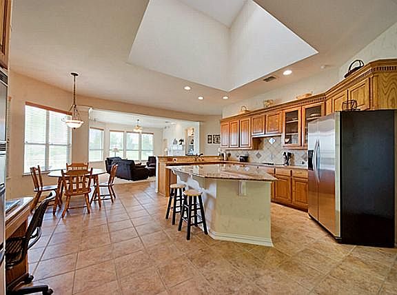 FURNITURE AND APPLIANCES INCLUDED in David Weekley home located in popular Coyote Ridge Golf Course. Bright and open one and a half story floor plan. Kitchen features beautiful granite, large island, stainless appliances, and double oven. Custom built-ins and surround sound accent many areas. Huge open bonus area upstairs plumbed with water for media or game room or both. Backyard large enough for pool with a fabulous view of the golf course.