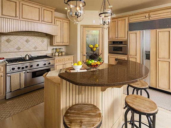 High quality well-appointed all stone 4 bdrm home by Gryboski Builders.Purposefully updated w/ fresh soft neutrals & natural textures to play up timeless architectural features & enhance the casual comfort of a relaxed living style.Desirable open floor plan,visually calming d??cor, beautiful golf course views, restaurant grade appliances,inviting outdoor living spaces (covered back porch/2 garden beds/fire pit/large stone patio/stone walkways),full size windows in finished LL (family room/bdrm/full BA/kitchenette/cedar closet/unfinished area has stairs to GA),3 car finished heated GA.