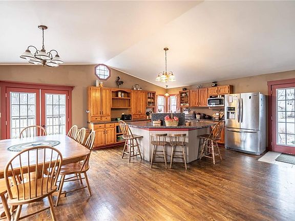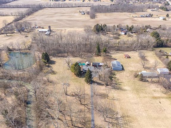 Looking for a great place to get away from it all? You won't want to miss this one! Tons of living space nestled on 5 tree lined acres. Open concept kitchen with cathedral ceiling that opens up into the great room complete with a fireplace. This quad level home has 3 bedrooms and a full bath upstairs. Master bedroom with Master Bath is on the lower level with a walkout onto your own concrete patio. Additional 5th bedroom, too! Endless possibilities. Outside features an in-ground pool, covered shelter area, in-ground trampoline and a swing for entertaining. Animals will enjoy the chicken coupe and one horse/cattle stall. There is a workshop with 220 electric, 2 car garage and storage area. Let's not forget 5 acres of beautiful land to enjoy!