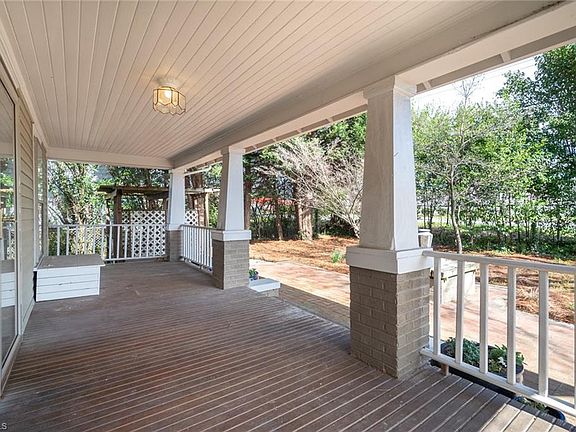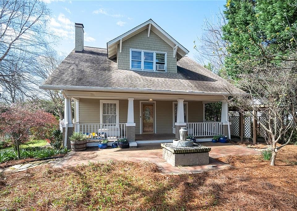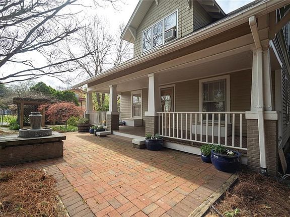 An urban oasis in Highland Park! 1930s Craftsman Bungalow. Mature Gardens. Covered front porch. Nice improvements, incl. updates to the oversized kitchen, make this home ready for the next loving owners. Heart of pine floors, claw tub, Hoosier cabinet, crown molding, fireplace. Versatile space throughout main level includes 4th BR currently used as a music studio. Spacious Master BR. Detached double garage w/workshop & storage. One block to playground. Easy access to Arboretum, UNCG, Downtown & much more.