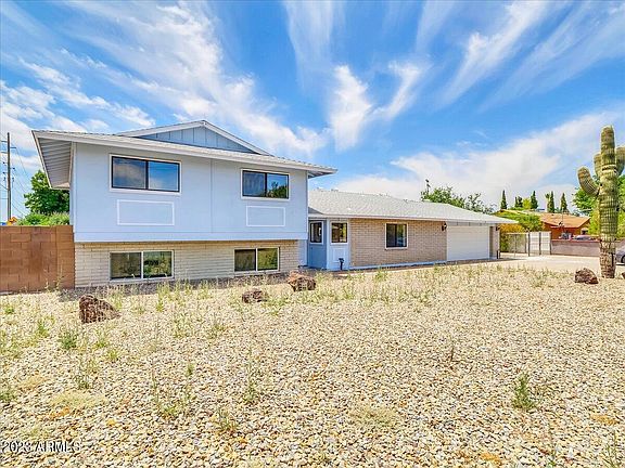 Sunburst Farms Horse Property. Tri-Level Horizon Model. Dual pane windows, ceiling fans in every room. Country living in the city. A great place to raise children, animals and garden. Schools, Shopping, Hospitals, medical centers are all within a mile. i-17 & 101 Freeways are very near w/access to downtown and the airport. Newer carpeting and pool was resurfaced w/pebble tech. New pool pump and cool decking also. All work was finished in late 2022 & 2023. RV parking and gate with pparking in front for at least 6 vehicles. 2 car garage. There is a small shed and horse or chicken set-up. Large country kitchen, large living and dining area lead out to a very large covered patio. 1 bedroom, 1 bathroom and living room in the basement + small office. 3 bedrooms + 2 bathrooms upstairs. Could