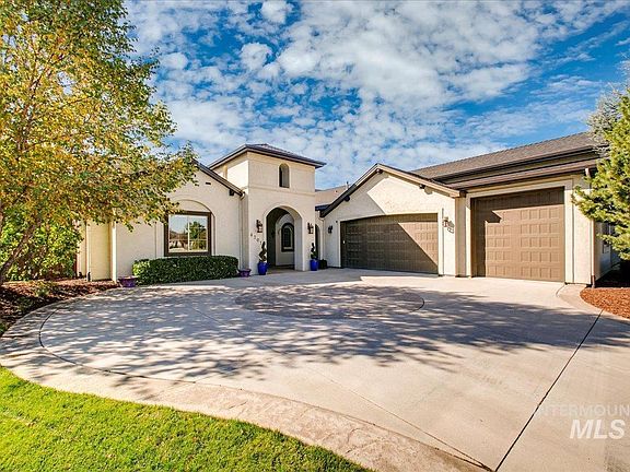 MUST SEE! Beautifully maintained Eagle home! Located close to a variety of shopping & restaurants, entertainment, golf courses, more! Neighborhood includes beautifully landscaped common areas, walk/ride paths, private pool, clubhouse & playground. Supersized garage w generous 3rd bay– perfect for home gym and/or projects. Great rm features include impressive stone fireplace & built-ins, high back-lit ceiling, beautiful hardwd floors, slider doors to fabulous outdoor living space. Secondary bedrooms share a Jack & Jill bath. Wonderful kitchen w dining nook has plenty of counter space, loads of beautiful cabinetry + lg walk-in pantry & incredible center island. Luxury stainless appliances include: 6 burner range, double wall ovens, french door refrigerator. Owner's suite features private patio access w wood fire pit, relaxing soaker tub, full-tile walk-in shower, gorgeous lighting + access to laundry rm via lg walk-in closet. Backyard retreat w lg covered patio, motorized sun shades & mature landscaping.