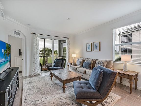 Enjoy this luxurious 3-bedroom END UNIT Condo located at Babcock National Golf & Country Club. Situated on the 2nd floor the Master Bedroom offer a Queen size bed, TV & and En-suite bathroom. This professionally decorated condo has everything you need for a relaxing vacation. The 2nd bedroom has a Queen size bed and the 3rd bedroom has 2 Twin beds for additional family members or friends. Its is easy to fall in love with the Open Concept floorplan of the Carolina Model, which features an open kitchen with an island, a eat-in breakfast bar & formal dining space with seating for 6 and a beautifully designed living area where you can relax after a day on the golf course! There is also an outdoor Storage Closet for each Unit, which is located just across the hall from your front door. The owners provide Hulu Streaming Service for your viewing pleasure. The Babcock National Amenity Center includes a Clubhouse, Restaurant, Tennis and Pickle ball courts, a Resort-style pool with lap lanes & a Spa / Hot Tub. There are also 3 Satellite Pools, Poolside Tiki bar offering drinks & Light fare and a state-of-the-art fitness center, sauna and Day Spa for your use. Living in Babcock National awards you access to the Babcock Ranch amenities which include: 2 pools, Gas fireplaces and grill cubicles for entertaining, tennis courts, bocce ball courts, pickleball courts, basketball courts, open field areas. For an additional cost, there is a 2-story fitness center that provides physical therapy treatments, lap pool, free classes, weights, basketball court, Pilates studio, massage center to name a few. Along with these amenities, downtown Babcock Ranch offers you the Lakehouse Restaurant, Slaters Provisions, Coffee Shop & Ice Cream Store, the Community Security office, Miles of beautiful walking trails, and many other Businesses right in the Community. Publix anchors the Crescent B Commons Shopping Center, where you'll find many other restaurants, retail shops & a STARBUCKS, MARSHALLS & an ACE HARDWEAR all Coming Right in the Community