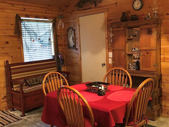 Sweet retreat to enjoy those Lake Eufaula days. Metal home that has a large great room with kitchen, living area and large sleeping quarters. Home is selling partially furnished. Shed is 18x14, property has .75 acres that is fully fenced.