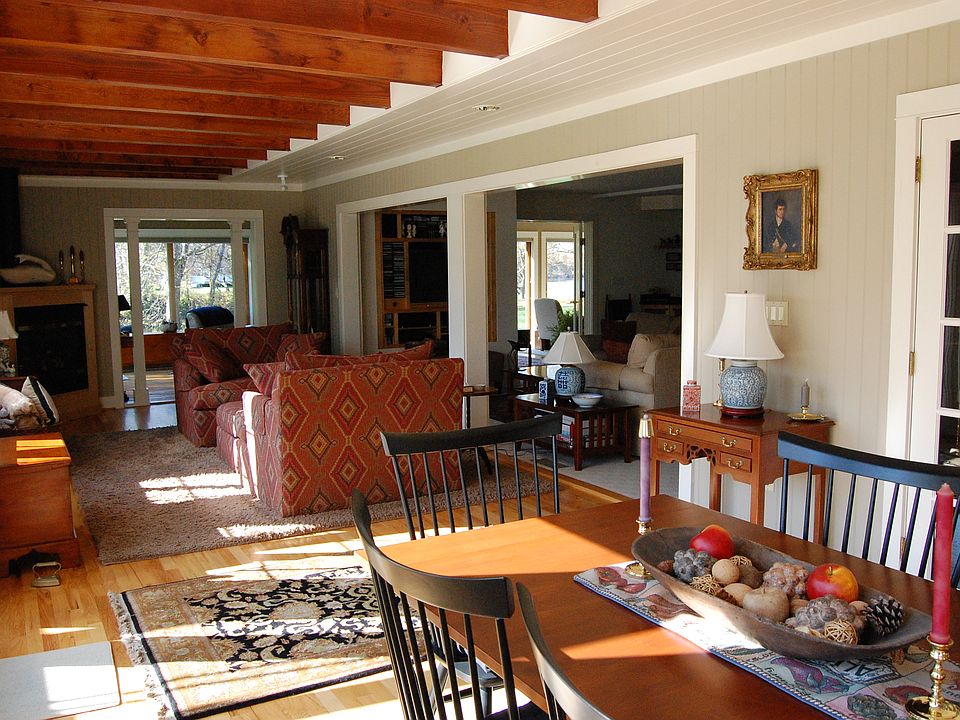 A contemporary passive solar heated home on water with pool, surrounded by farm fields and woods... very private and quiet. Barn with its own driveway.