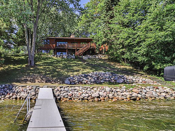 Don't miss this beautiful, Lake Alexander home. This four-bedroom two bath home boats beautiful lake facing views from every room, a rip rap shoreline with a firepit down by the water, and a hard sand bottom. This well-built rambler style home features, a walkout basement for easy access to get in and out from the lake, a large deck to enjoy your coffee in the mornings along with a beautiful sunrise, a well-maintained yard with a new underground sprinkler system being installed, gradual steps down to the lake, beautiful landscaping, a see through gas fireplace, a wood burning fireplace, two docks for all of your lake toys, and a great location just down from Anchor North. You will love all that this property and Lake Alexander have to offer. Schedule your showing today!