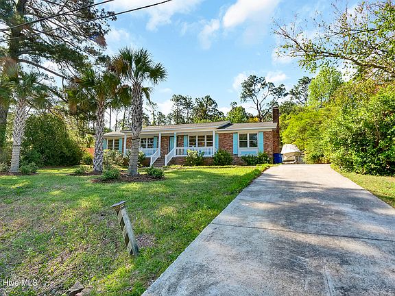 Call this charming brick ranch Home Sweet Home! Open floor plan leading to a sunken den with wood burning fireplace. Granite countertops, SS appliances, recessed lighting, soft close shaker style cabinets/ drawers, and kitchen island with room for seating. Bathrooms have recently been remodeled. Original hard wood floors provide timeless beauty that's hard to find these days. Gorgeous new front landscaping with 3 palm trees add to the curb appeal. The home sits on a large, private, high, dry lot with a newly fenced backyard with deck and pergola for your enjoyment. Shed in back for additional storage. No city taxes, no HOA (park your boat or RV), well water so you can live off the grid! Come take a look and make this charming brick ranch your home or investment! Close to UNCW, DT and Wrightsville Beach. Lot acreage to be confirmed by buyer.