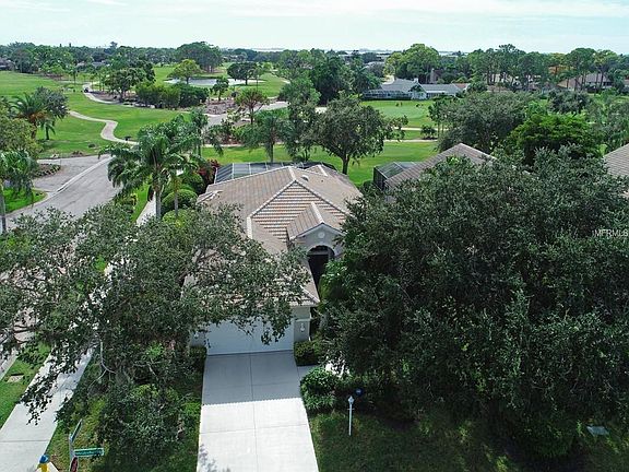 JUST REDUCED FOR INCREDIBLE VALUE! GORGEOUS HOME in "The Greens," a hidden gem w/in IMG Golf & Country Club! This grand sized home knocks out all competition, checks off all "must have" boxes! IDEAL LOCATION in small enclave of homes surrounded by lakes, preserve & fairway. PREMIUM golf course lot overlooking pro tee & multiple fairways. For Florida, has the essential, superior CONCRETE BLOCK construction plus added value of quality TILE roof. Situated on choice, private corner, lushly landscaped w/ no home on 1 side & lake beyond. Classically beautiful exterior architecture & desired contemporary, open design within. Beveled glass French doors invite you into a gracious foyer leading to the magnificent Great Room! Elegant coffered, VOLUME ceilings. Tile floors flow on the diagonal. 10 foot sliders pocket, disappearing for expansive flow out to gorgeous brick paver patio & stunning pool WITH spa. BEST southern exposure! Cabana bath for no dripping feet! Jewell of a kitchen...rich wood paneled cabinetry, granite counters, upgraded appliances, charming breakfast room with bay windows. Pantry with loads of storage. Huge Owner's Retreat is tiled, with tray ceiling & bay window looking out to golf course. Luxury Master bath, garden tub + big walk-in Roman shower. Two private guest bedrooms PLUS a den. LOW HOA INCLUDES MAINTENACE FREE YARD CARE! NO CDD fees! NO flood insurance required. Perfect for IMG family as convenient bike bath to campus. Close to, beaches, Sarasota arts! A standout!