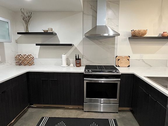 The apartment features approximately 900 sq ft of comfortable living space, with a private entrance and a private driveway that runs alongside the main house. A rare bonus: an attached 2+ car garage (approximately 500 sq ft) with built-in storage shelving perfect for vehicles, bikes, gear, or extra storage.