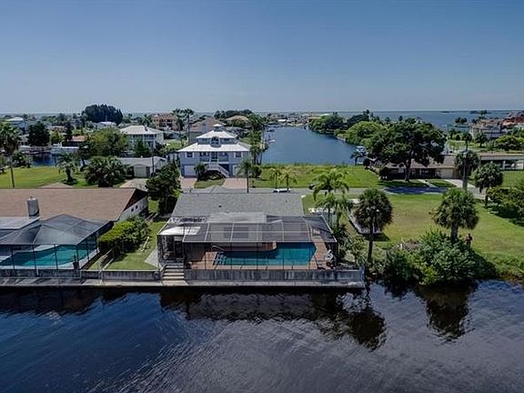 Own your own piece of Paradise!! This 3 Bedroom/2 Bath Home offers nearly 1500 sq feet of Open living space and a Split Bedroom floor plan. Features include tile flooring throughout, Mahogany cabinets, Stainless Steel appliance package and a jetted jacuzzi tub. Water features include a Florida Room, a screened patio, a covered patio, a large screen-enclosed L-shaped pool with pop-ups, outdoor shower, 79.5 feet of seawall just 2 minutes to the open waters of the Gulf. Recent updates include a 50-year Roof installed in 2011, HVAC in 2006 and new insulated garage door. Please verify room dimensions.