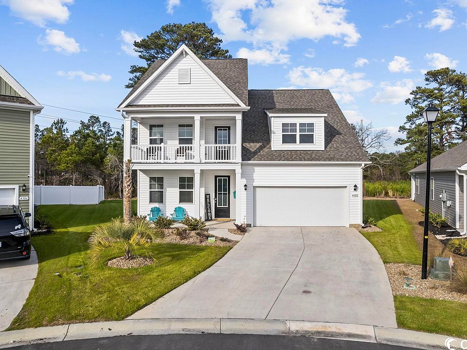Welcome to 4302 Pecan St! Located in the BEAUTIFUL community of Hidden Brooke in Little River. This exquisite 4 bedroom 3.5 bath is a MUST SEE! Enter this stunning two-story home into an open concept design featuring your spacious Primary bedroom on the first floor. Perfect for entertaining, the kitchen overlooks the open living room and features granite countertops and all stainless steel whirlpool appliances, including a natural gas range. Beautiful laminate flooring flows throughout the living room, dining room, kitchen, and flex room with French doors. The first floor Primary Bedroom features a beautiful tray ceiling with a large walk in closet. The Primary bathroom features dual vanity sinks with granite countertops and a large glass door shower. The additional 3 bedrooms and 2 full baths are located on the second floor with a spacious loft. Enjoy a cup of coffee or watch the sunset off of your huge second floor balcony. The backyard features a screened in porch with an additional patio area to enjoy grilling and entertaining during the warm summer nights. Hidden Brooke is a pristine community with a 1/2 mile tree lined drive from the entrance to the homes. Minutes away from Highway 31 which provides quick and easy access to all of the Grand Strand's most famous offerings such as dining, golf, entertainment, and shopping. Just a few miles to the Sandy Beaches of North Myrtle Beach! Come check out this one of a kind home! Hidden Brooke Has a community Pool, Gym, Outdoor Seating, Catch and Release Fishing/Paddling in the large pond beside the community center,